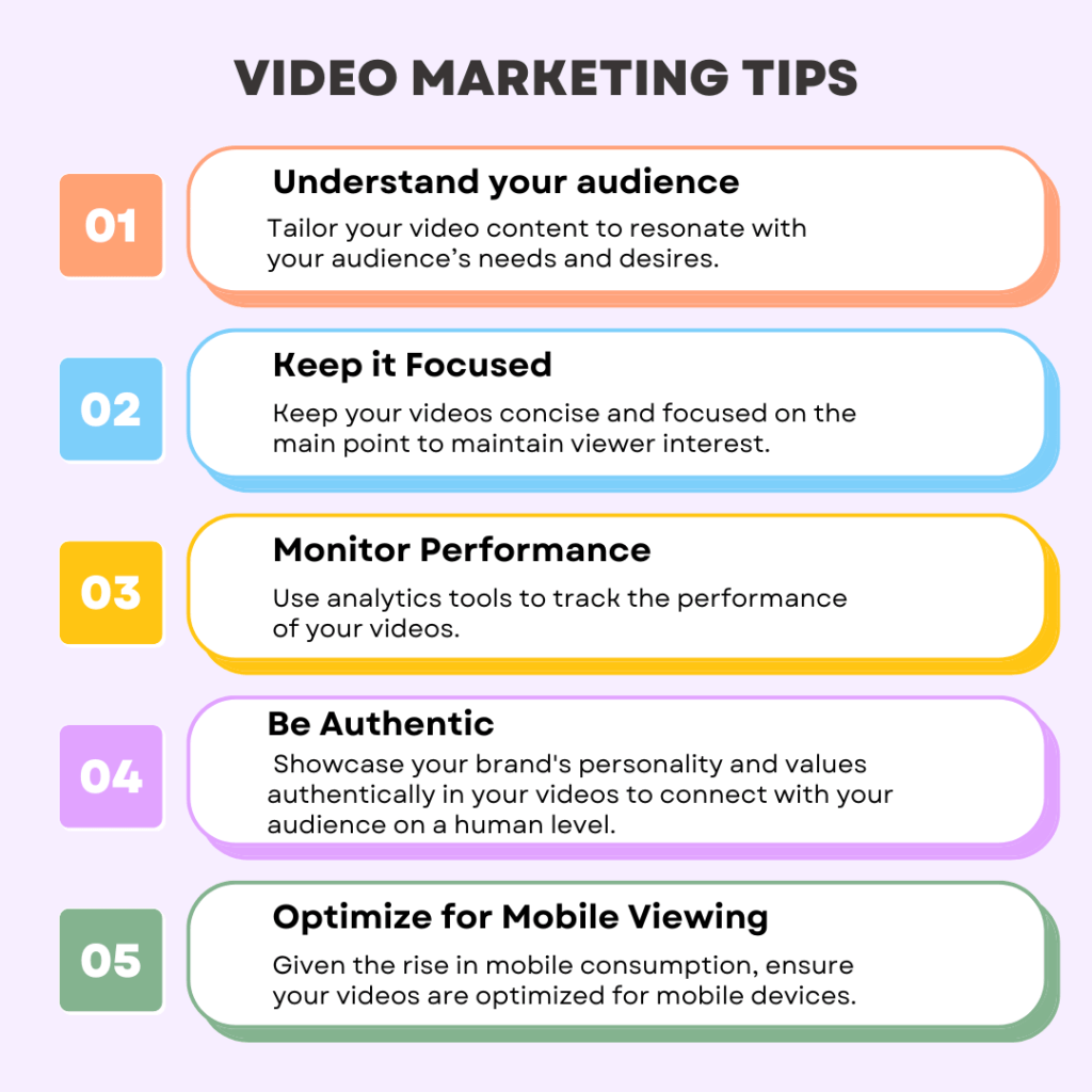 - Understand your Audience: Tailor your video content to resonate with your audience’s needs and desires.