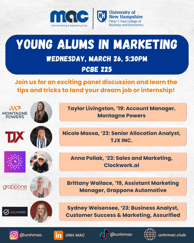 Want to know how to land your dream job or internship? Join us at our upcoming Young Alumni Panel for the spring semester!
